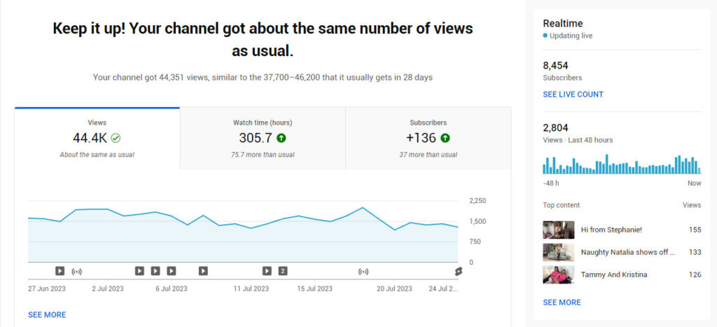 - YouTube continues to improve in both total watch time and subscribers with Live Q&As in addition to the Throwback Thursday and BTS videos that are being posted regularly.