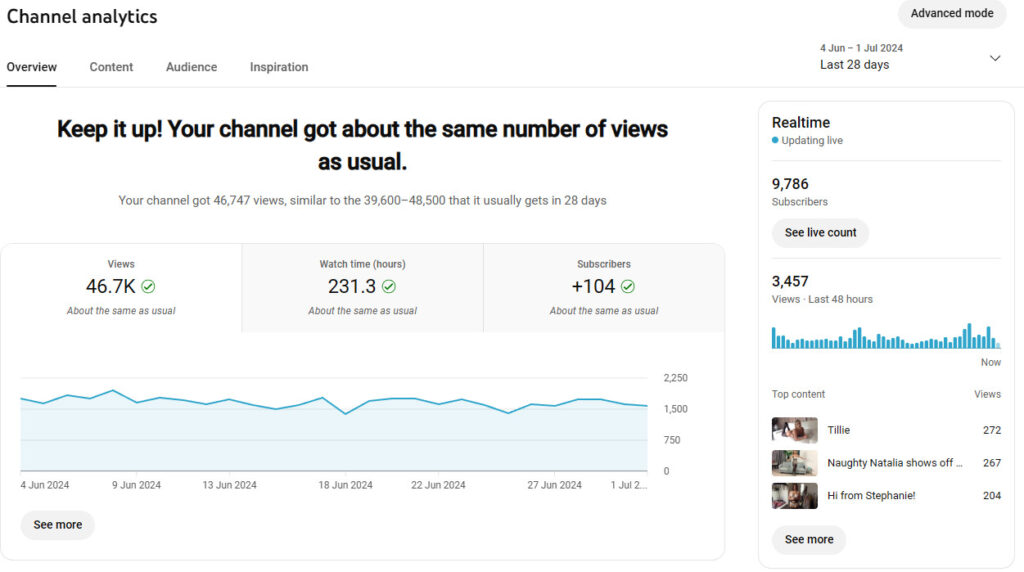 - YouTube channel subscribers increased 118 subscribers to 9,786 subscribers. Views and watch time remain have all increased over the last 28 days.