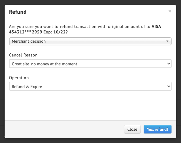 Once you are happy, click the “Yes, refund!” button for the refund to be processed.